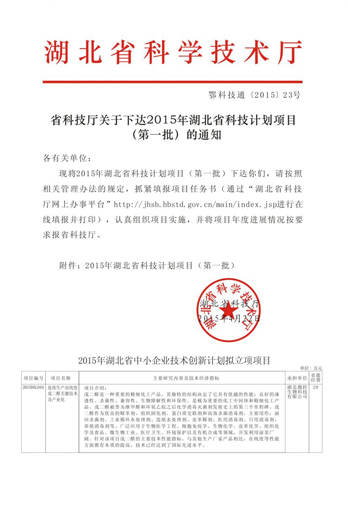 湖北微控獲得湖北科技廳2015年湖北中小企業(yè)技術創(chuàng)新立項