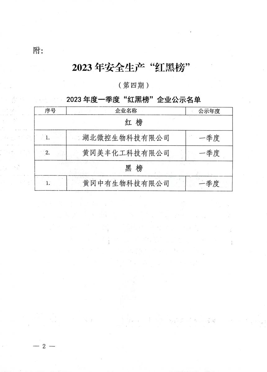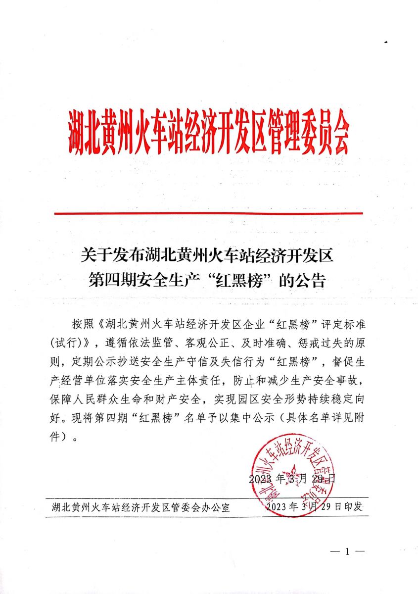 為督促生產(chǎn)經(jīng)營單位落實安全生產(chǎn)主題責任,防止和減少生產(chǎn)安全事故,保障人民群眾生命和財產(chǎn)安全,實現(xiàn)園區(qū)安全形勢持續(xù)穩(wěn)定向好。湖北黃州火車站經(jīng)濟開發(fā)區(qū)管理委員會,遵循依法監(jiān)督、客觀公正、及時準確、懲戒過失的原則,定期公示抄送安全生產(chǎn)守信及失信行為“紅黑榜”。湖北微控榮幸登上紅榜名單。